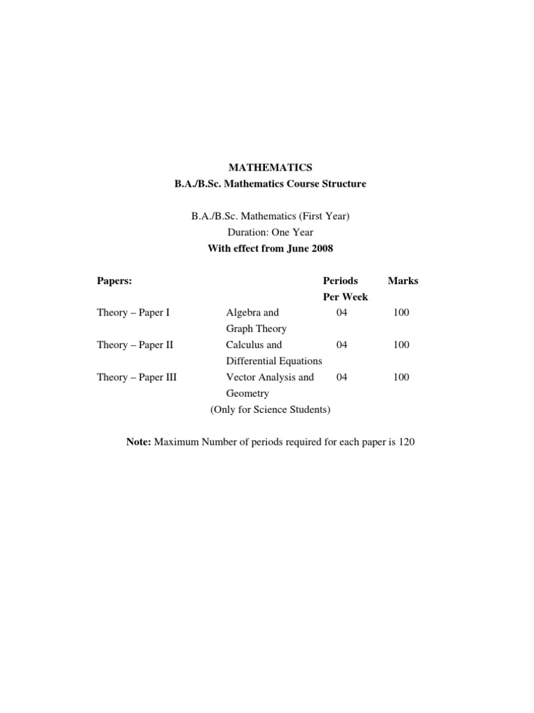 Bsc Mathematics Syllabus 1st 2nd 3rd Year Pdf
